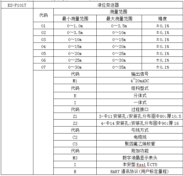 本產(chǎn)品為分體式結(jié)構(gòu)型式,并有電纜、防腐型兩種介質(zhì)測(cè)量類型。防腐型產(chǎn)品可以抵御多種腐蝕性液體的侵蝕,能夠最大限度的滿足客戶的需要。 KS-P101T系列液位變送器產(chǎn)品分為普通型和本質(zhì)安全防爆型兩種型式,防爆型產(chǎn)品能夠廣泛用于工業(yè)現(xiàn)場(chǎng)中各種惡劣及危險(xiǎn)場(chǎng)所。